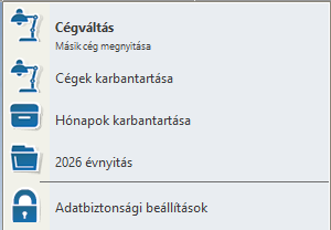 A 2026. évi programban a Karbantartás menüben találjuk az Évnyitás menüpontot: