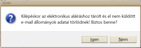 FIGYELEM! Ha a kiküldés előtt kilépünk a menüpontból, akkor a program később nem fogja tudni kiküldeni a PDF fájlokat!