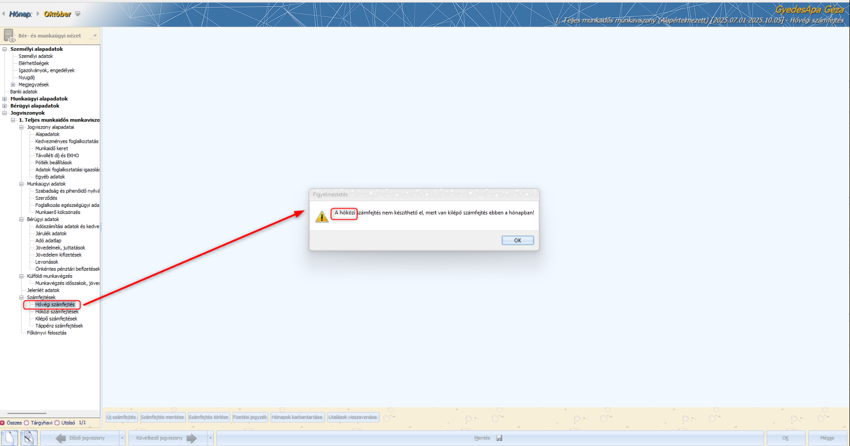 - Végezetül végezzük el ismét a (hóközi/hóvégi/kilépő) számfejtést, majd