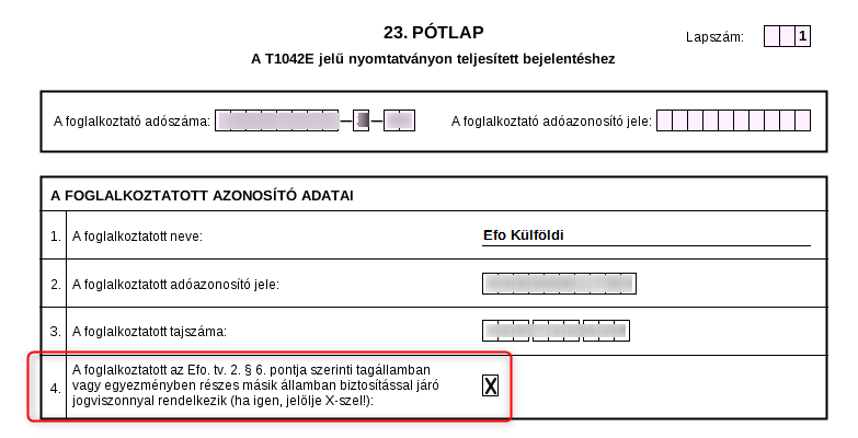 Egyszerűsített foglalkoztatás - külföldi biztosítottság jelölése a T1042E nyomtatványon